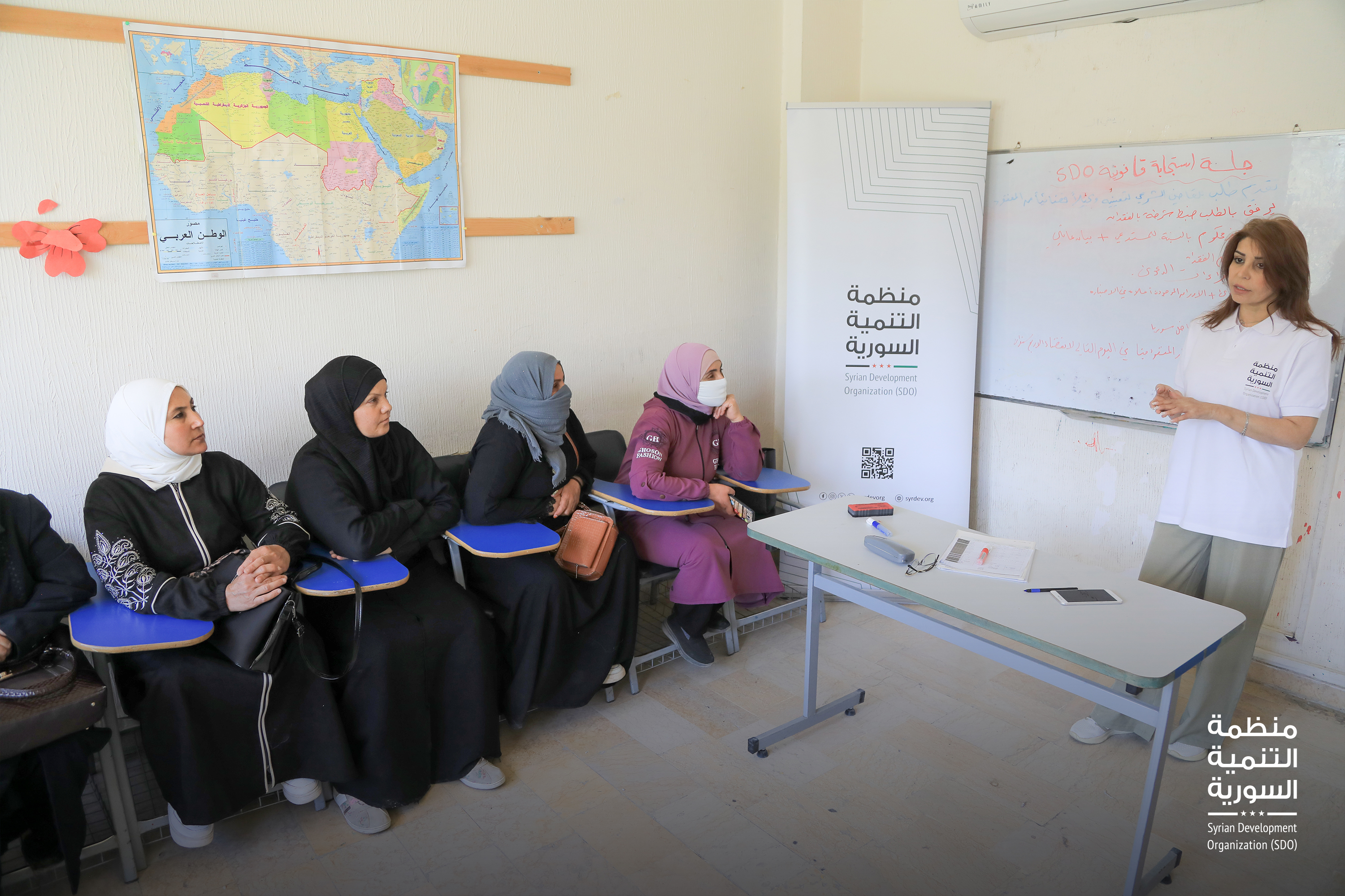 جلسة توعية قانونية في منارة قطنا لتعريف العائلات بخدمات الاستجابة القانونية المجانية