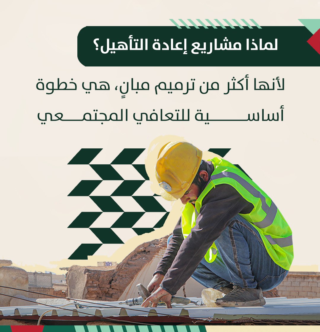 ولا تقتصر جهود إعادة التأهيل على المساكن فقط، بل تشمل أيضاً مجموعة من المرافق والخدمات العامة، مثل المراكز الصحية والتعليمية والمدارس والحدائق، لتعزيز وصول المواطنين إلى خدمات أفضل وأكثر أماناً، والمساهمة في تحسين واقع المجتمعات المحلية.